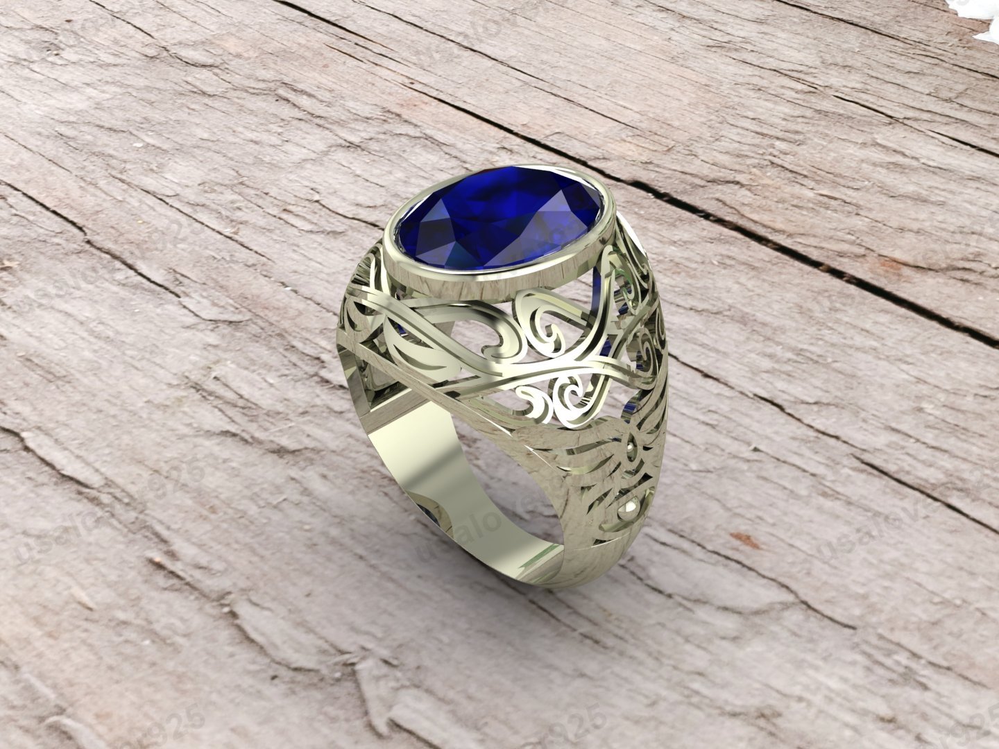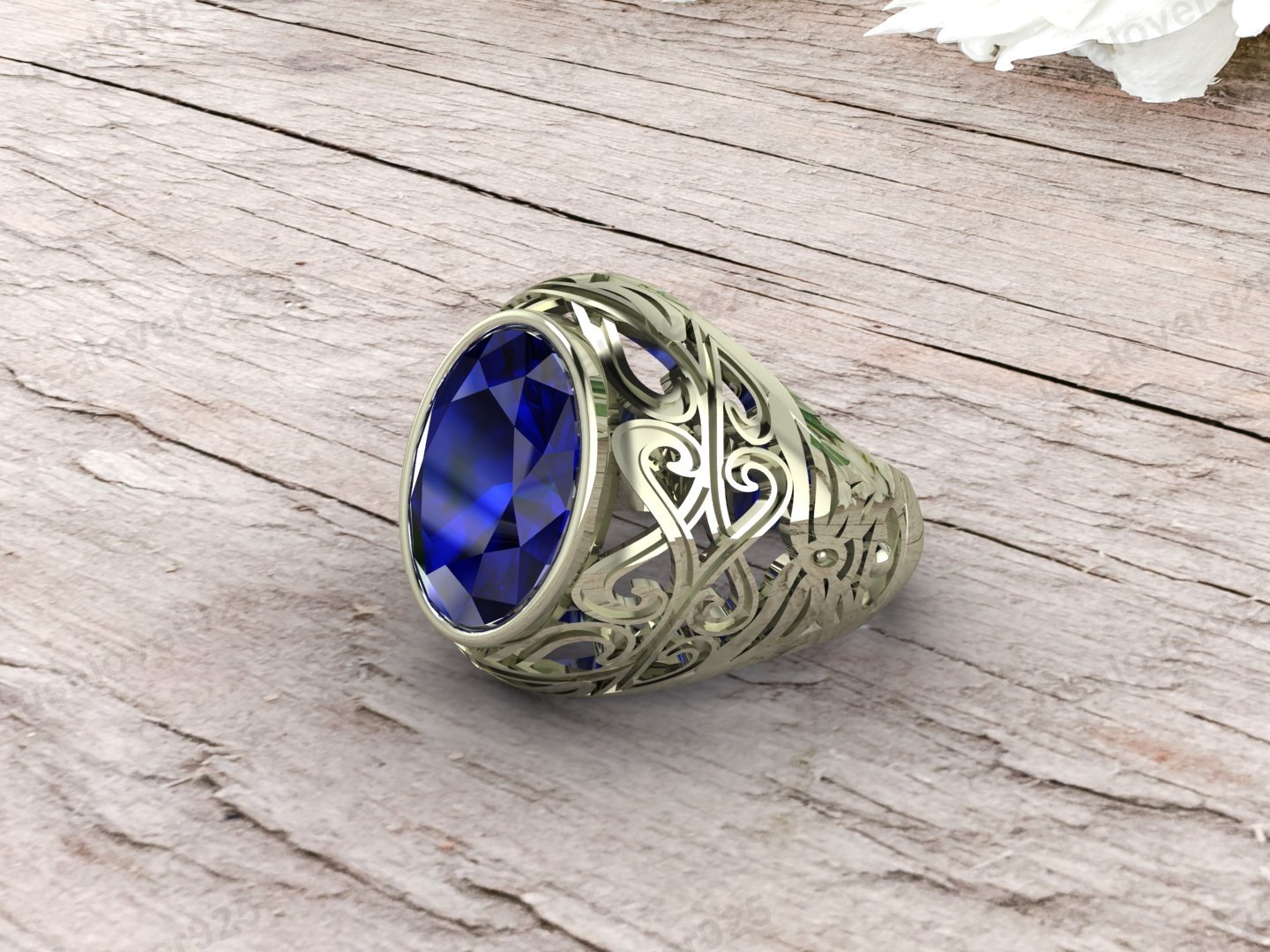Sapphire Oval Gemstone Art Deco Men’s Signet Ring, 925 Solid Sterling Silver Jewelry