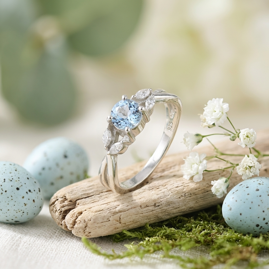 Sterling Silver Aquamarine Ring | March Birthstone Solitaire Women’s Band