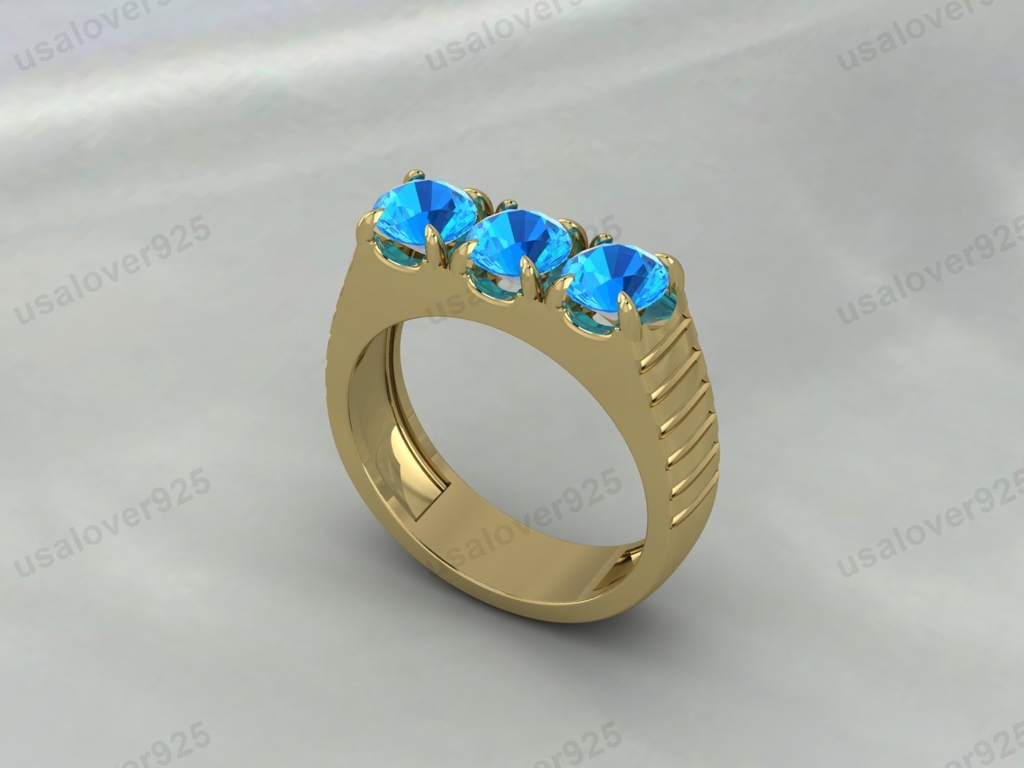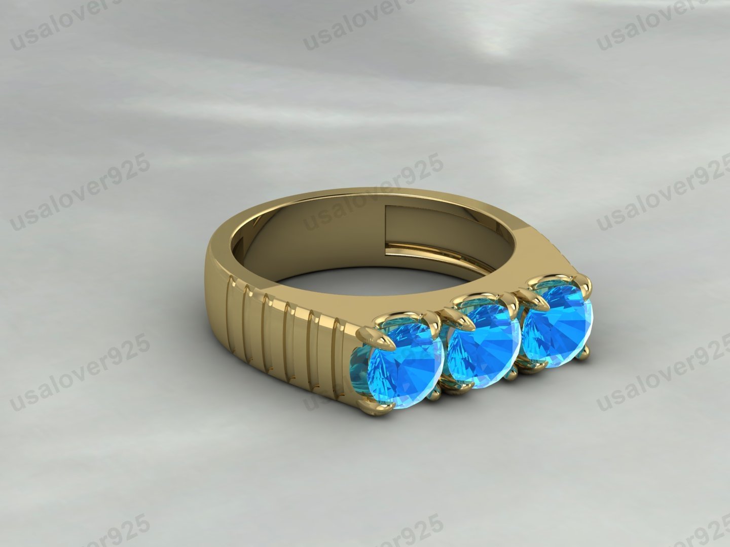 Topaz Round Gemstone Men’s Signet Ring, High Quality Yellow Brass Jewelry