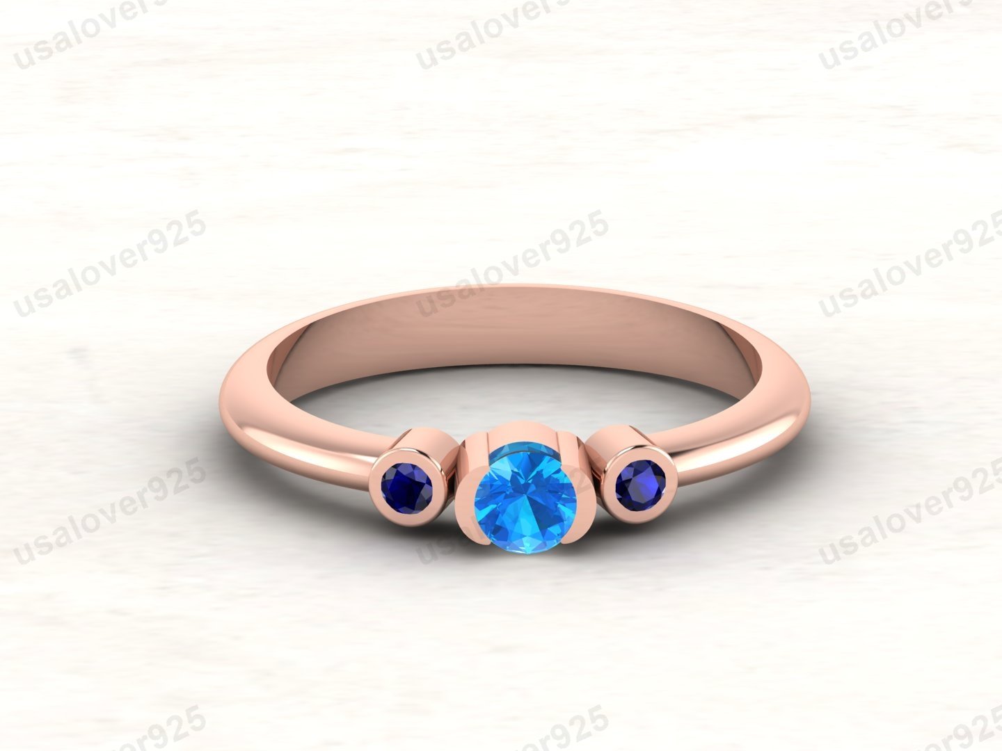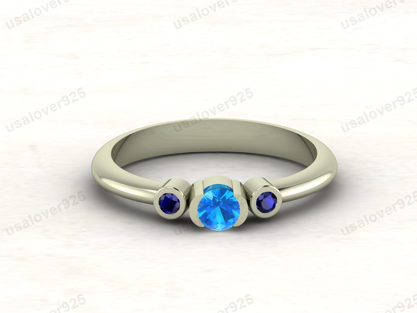 Topaz & Sapphire Gemstone Solitaire Women Ring – 925 Sterling Silver Jewelry