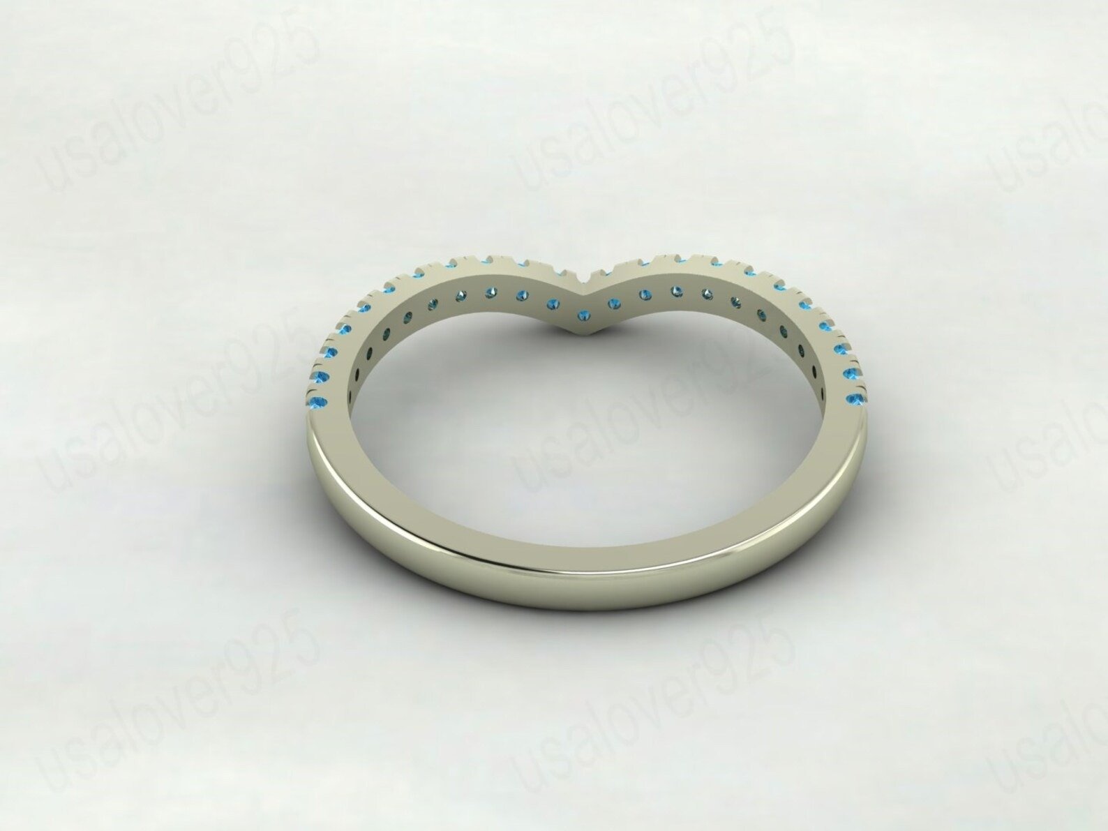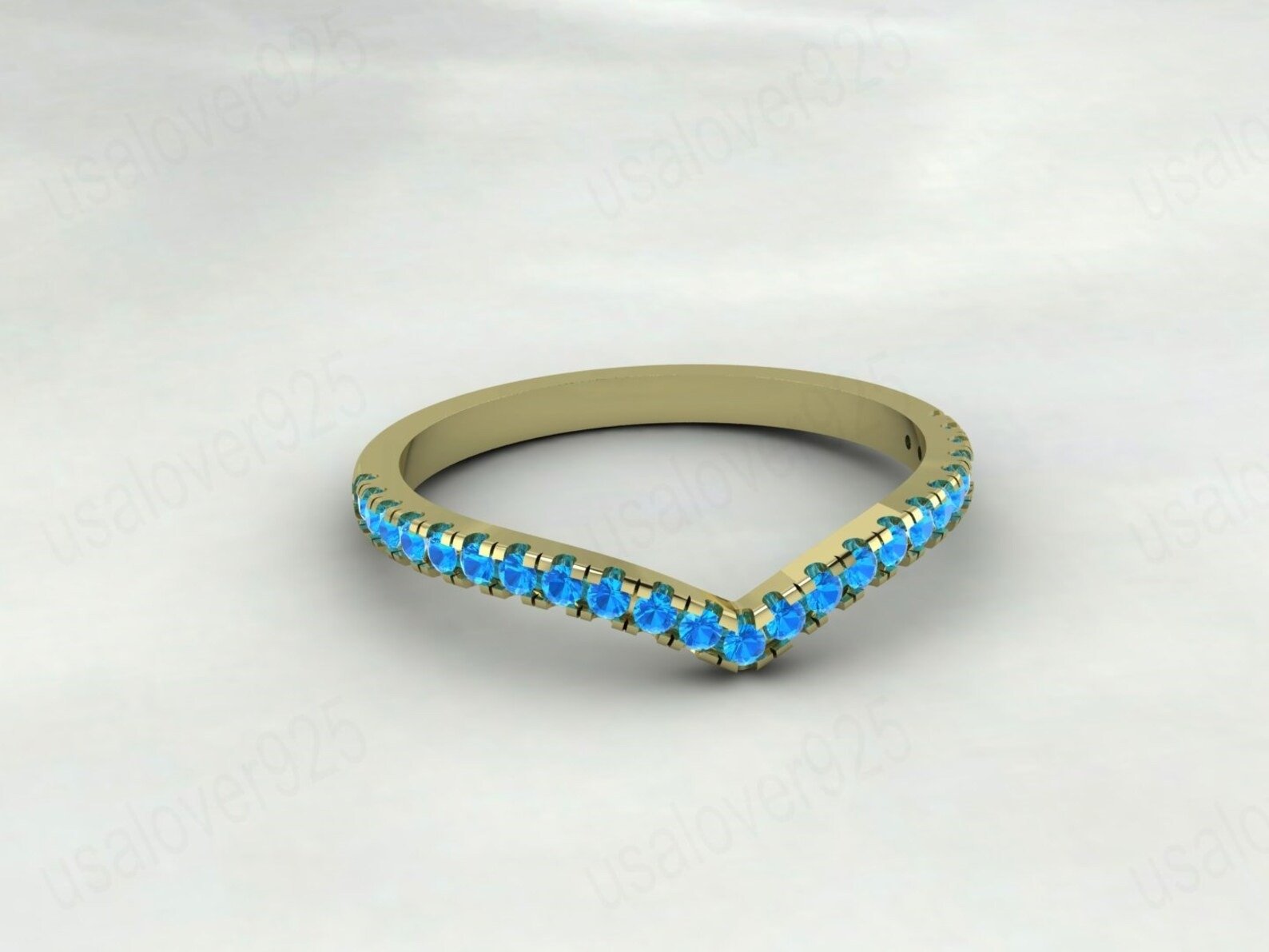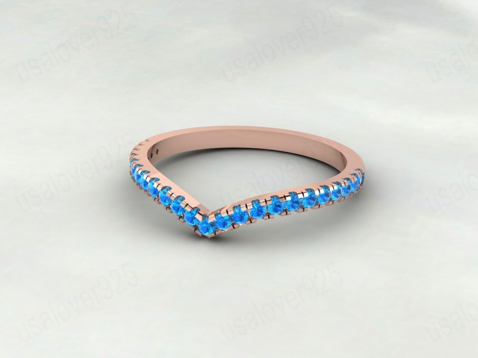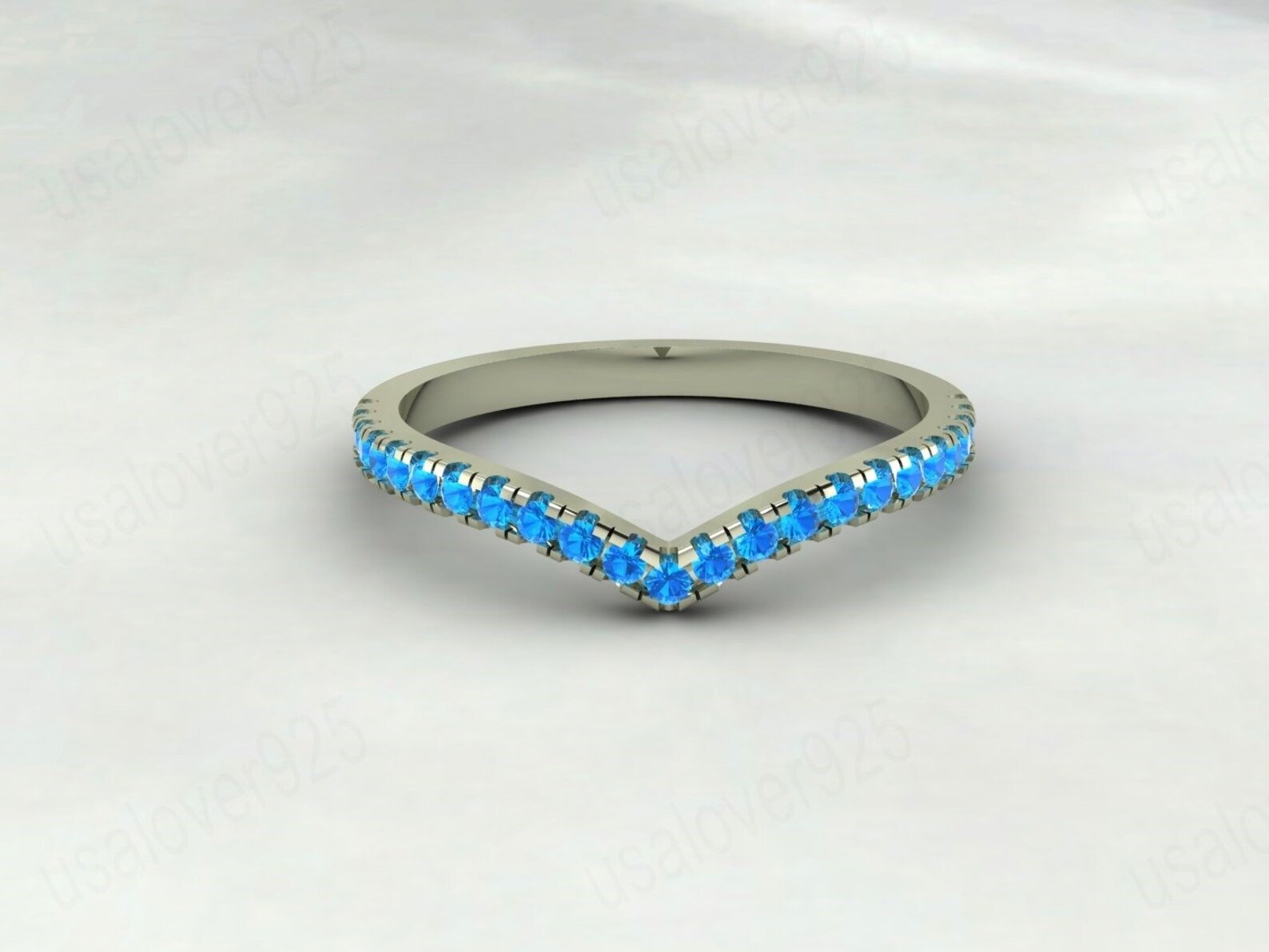V Shape Blue Topaz Gemstone Half Women Band – 925 Sterling Silver Ring Jewelry