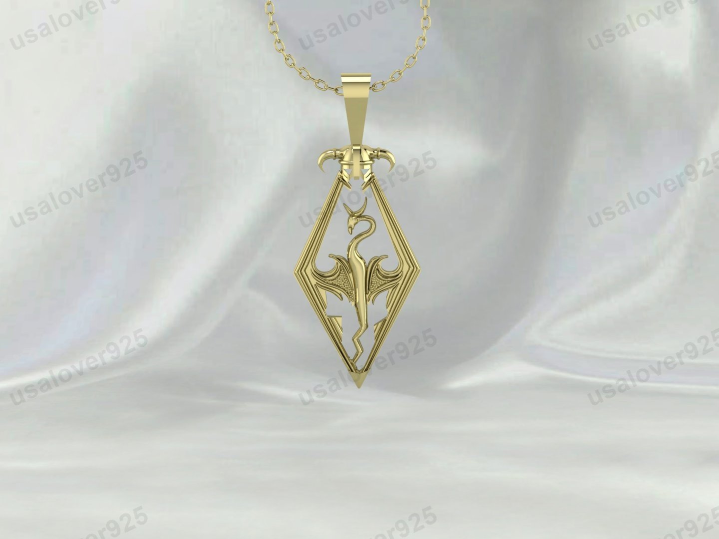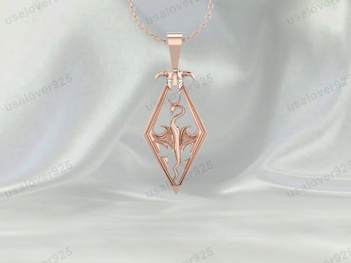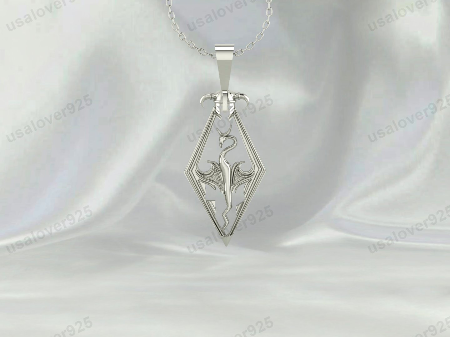 Vintage Skyrim Dragon Unisex Pendant, 925 Sterling Silver Necklace Jewelry